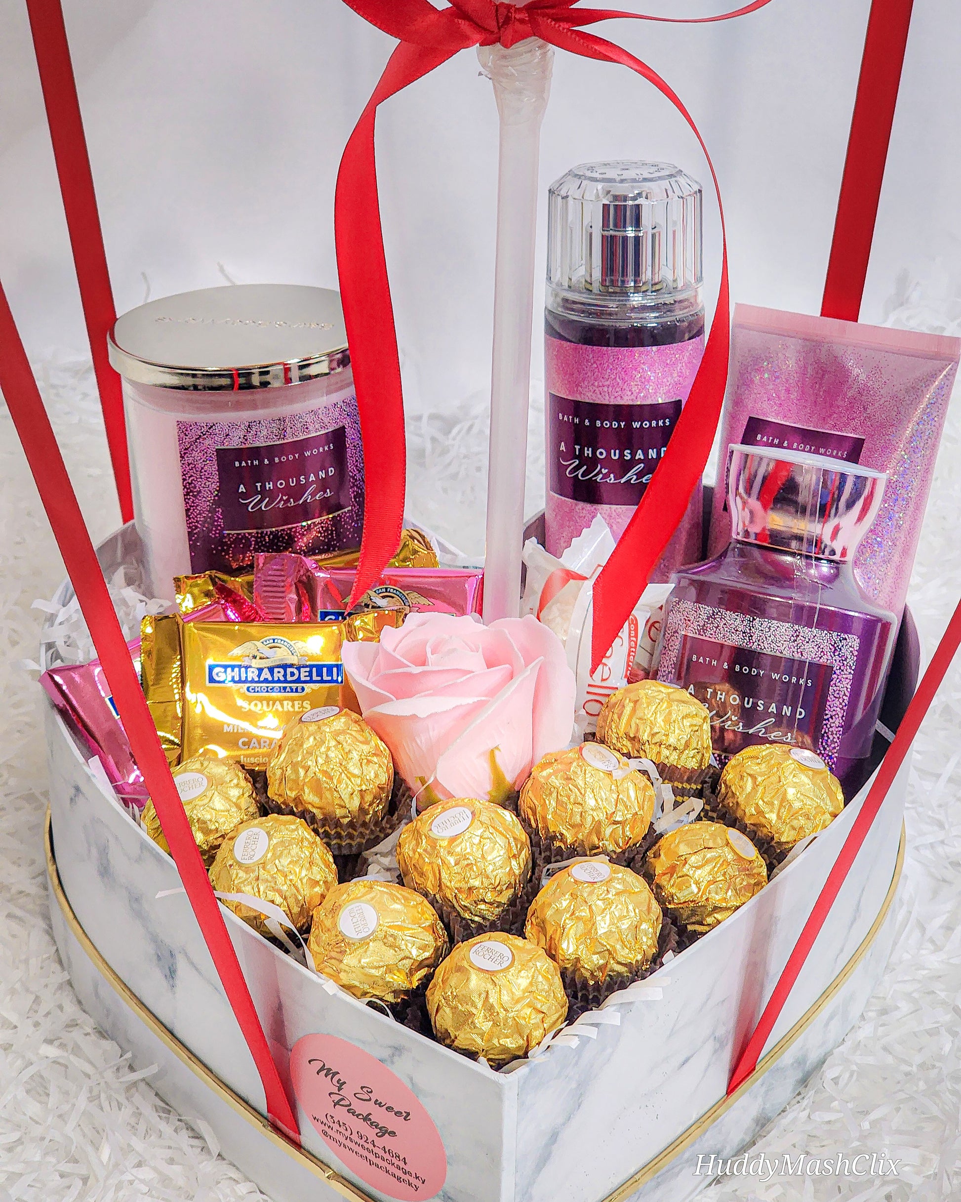 B&B Works body lotion, body spray, body scrub, candle and chocolates