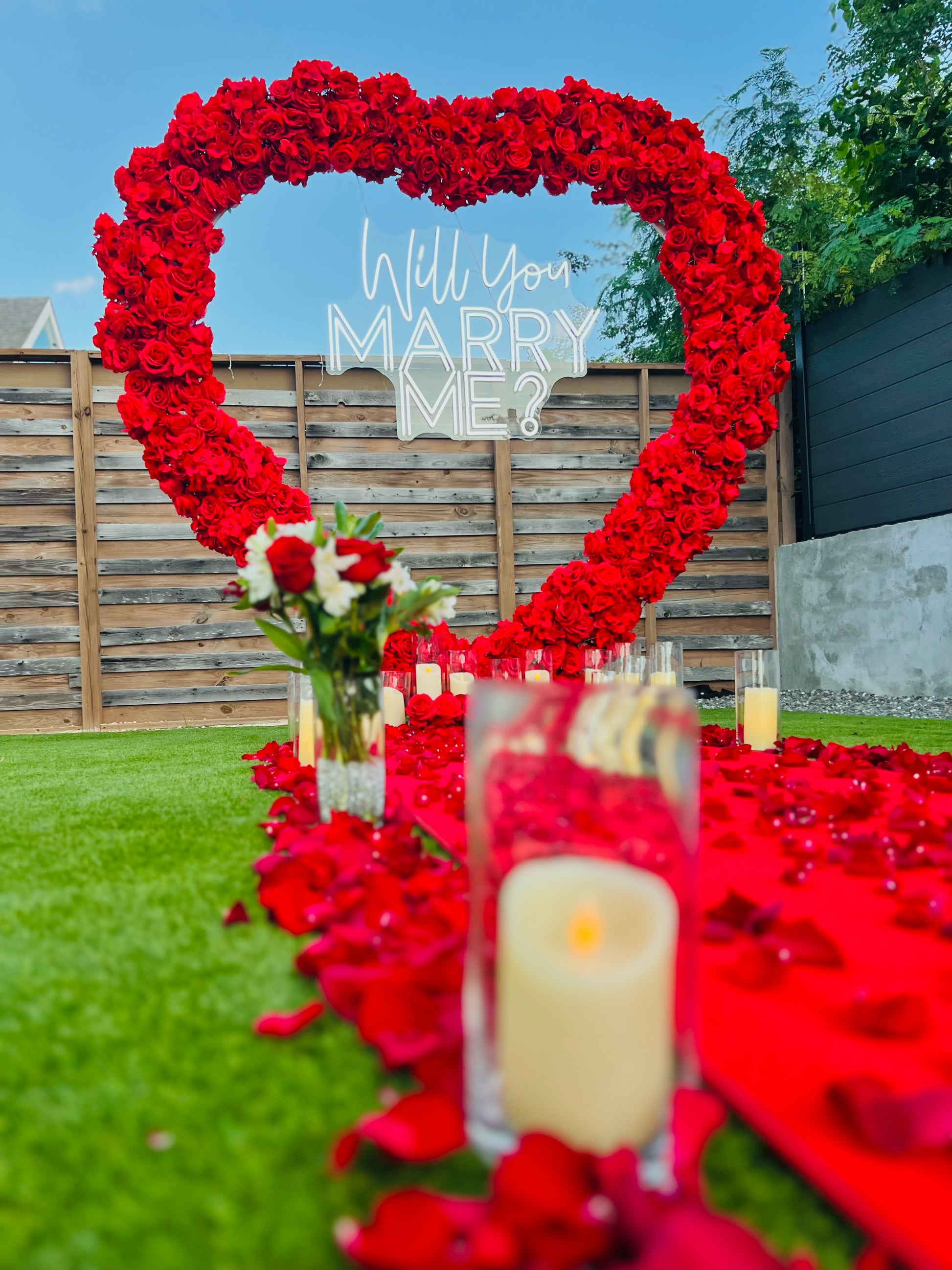 Our Red heart “Marry Me” Proposal Setup will create a moment to remember forever! Whether it’s an intimate rooftop, a beautiful beach, or a luxury hotel, we have the perfect décor to match your love story.